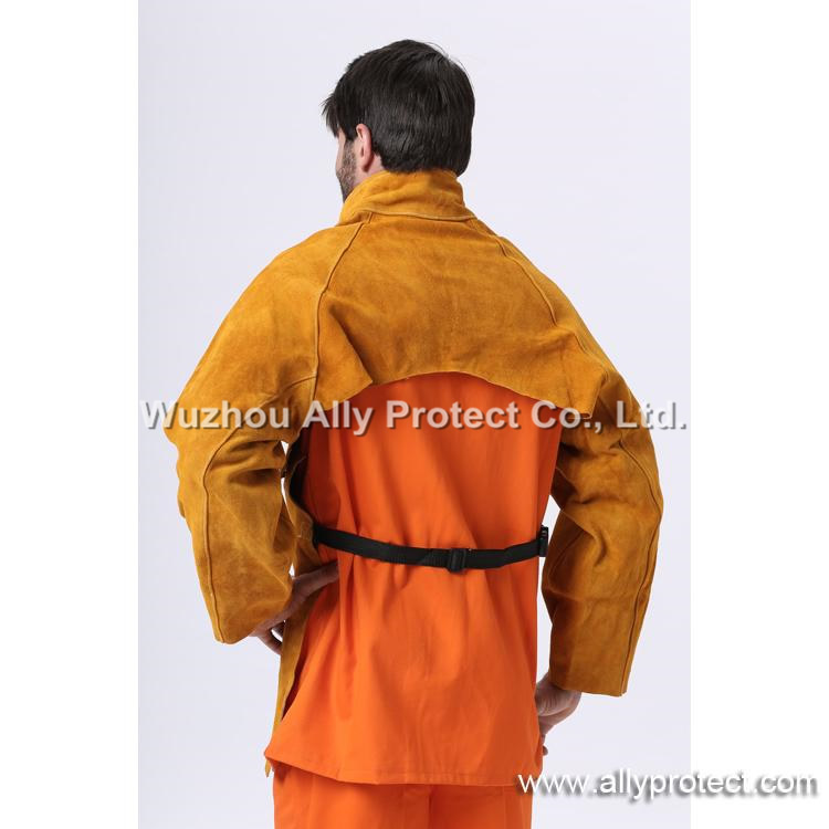 • Product description: [ AP ]Split cowhide cape sleeves with bib garment offering the perfect cool using. You can freely use this cape to protect the arms or torso from welding spatters and heat.
